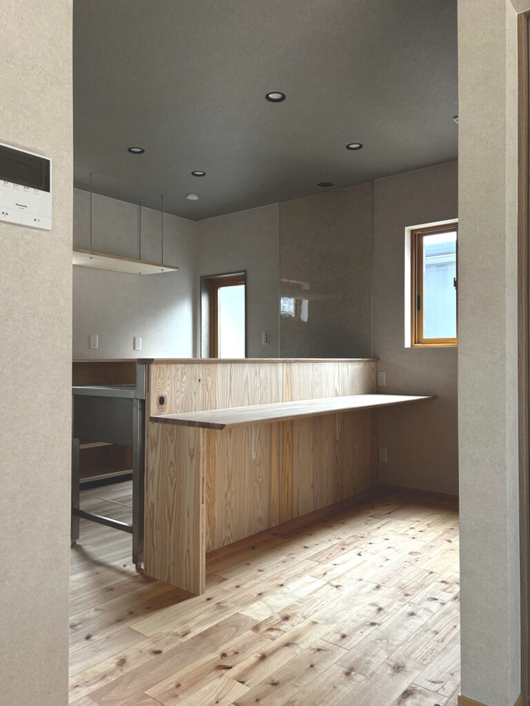 また、ダイニングテーブルを中心に据えたキッチンが、家族の距離を近づける。