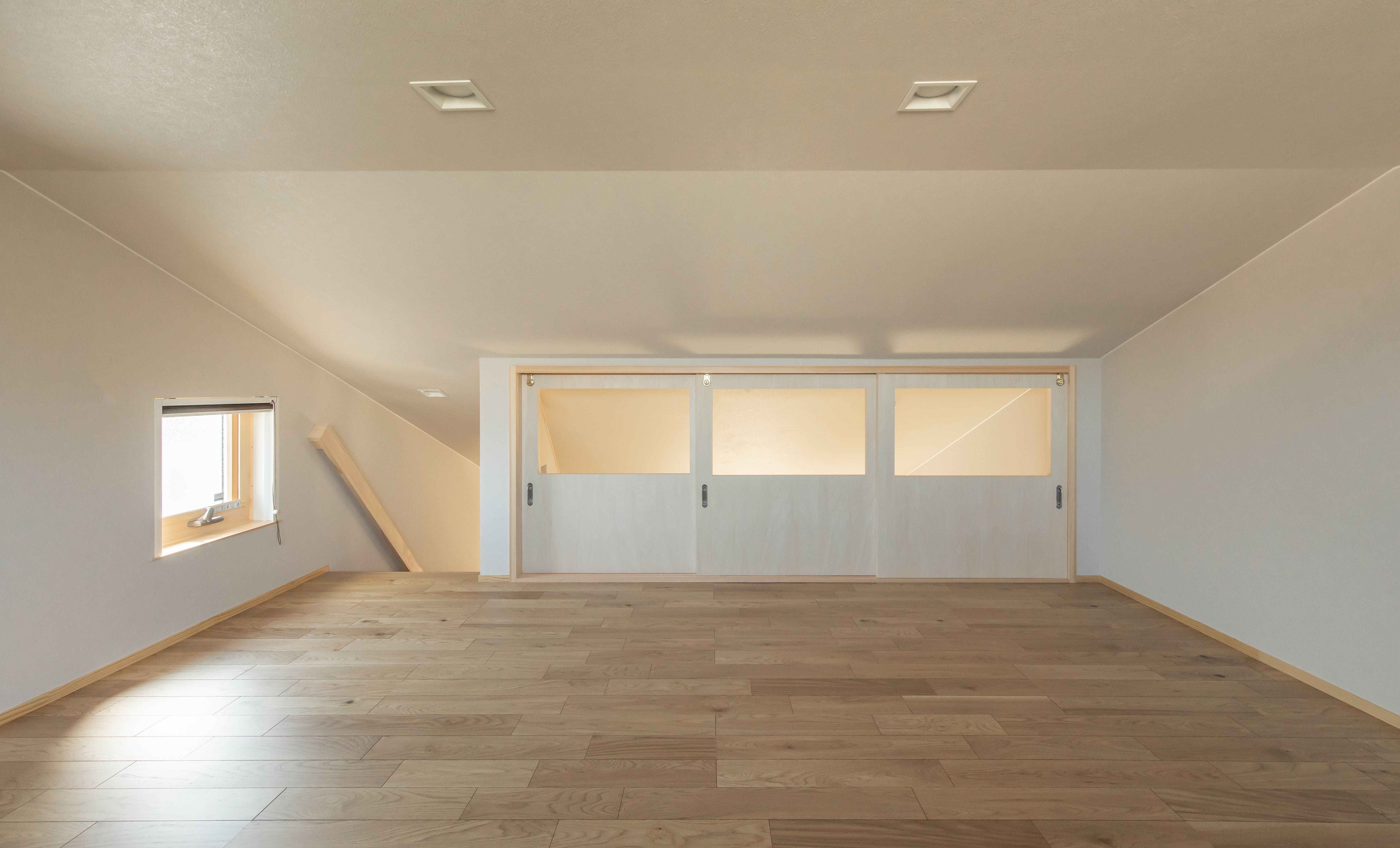 猫がのびのび遊べるスペースと、たっぷり収納できるロフト。