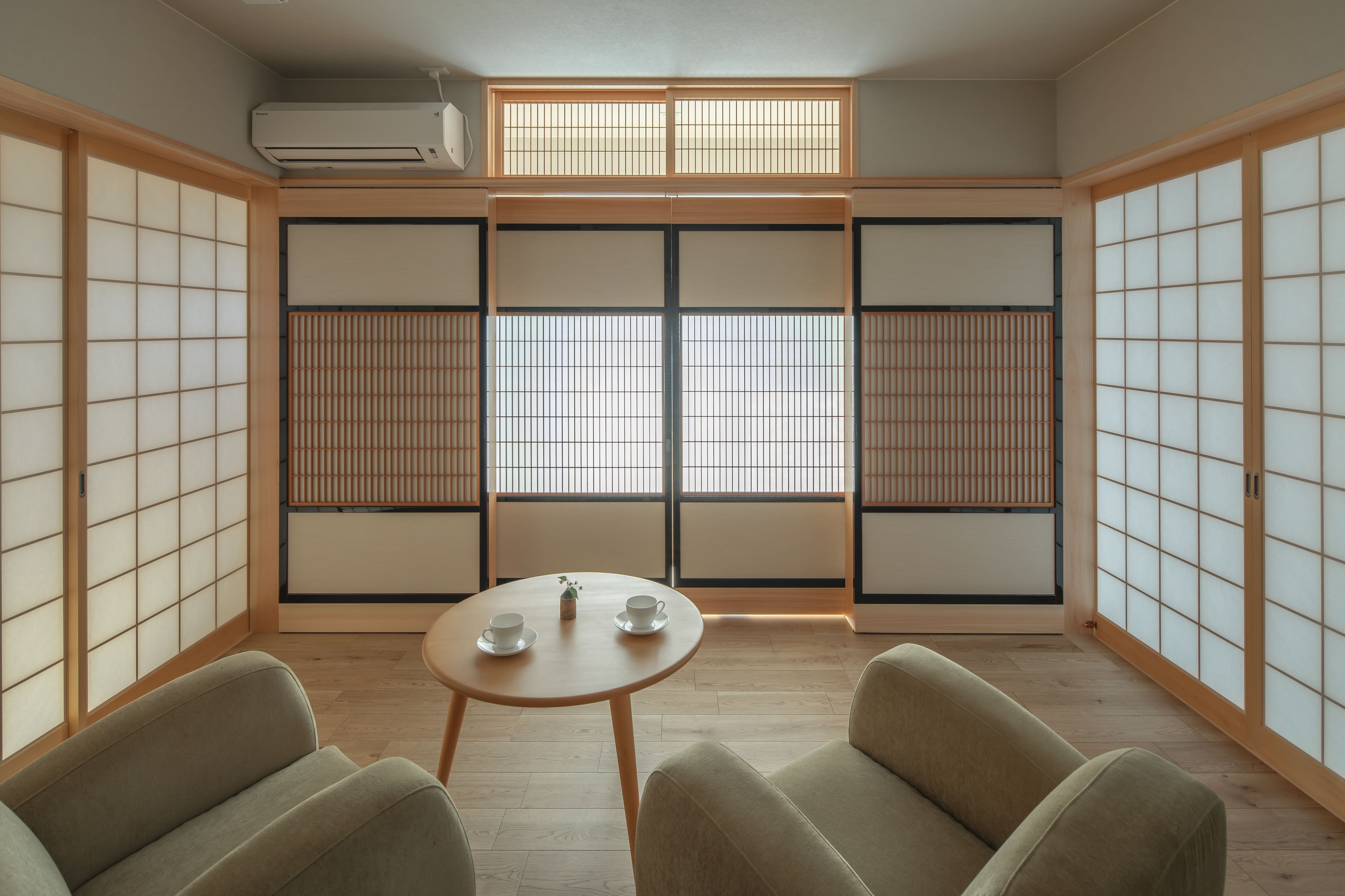 旧居の建具をリメイクし、新しく造作した建具とも調和。